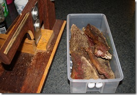 Andersinds het die masjien lekker gewerk – binne 2 dae was al die vleis droog, en eintlik was die dunner stukkies al te droog. Nou het ons hope sout om op te eet.